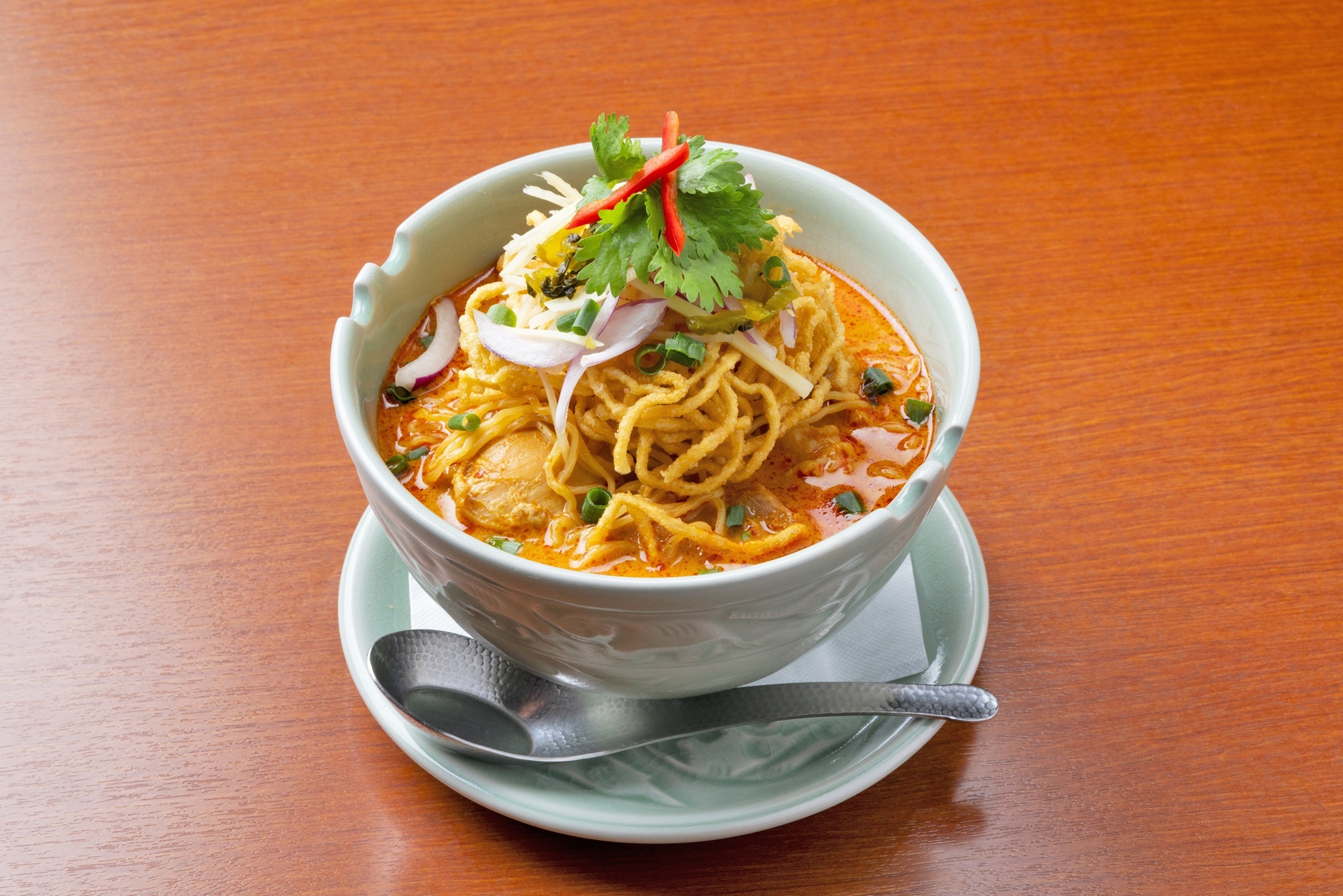 タイ北部のチェンマイ名物のカレーラーメンです。
