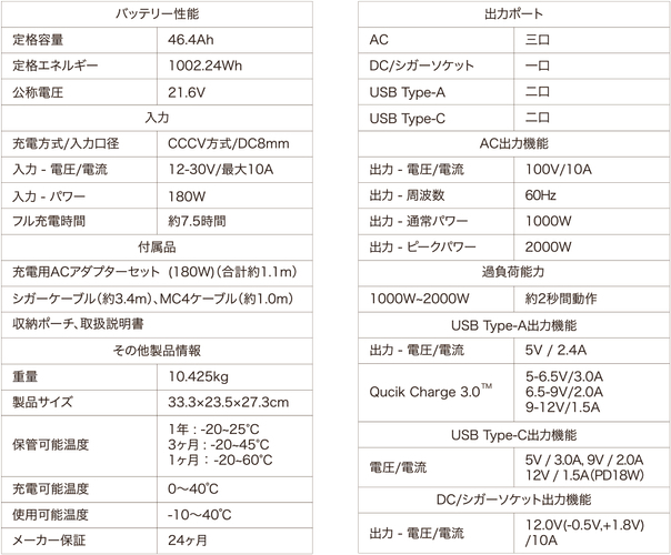 過去のPowerArQシリーズの容量は300 ~ 600Whでしたが、 本製品は1000Whの大容量を実現。また今回のパワーアップでは、長時間使用はもちろん、高い出力にも対応出来るよう、AC出力を1000Wに。これまで使用できなかった、コーヒーメーカー・電気ポット・ハロゲンヒーターなどの高出力な電化製品にも使用可能となり ました。