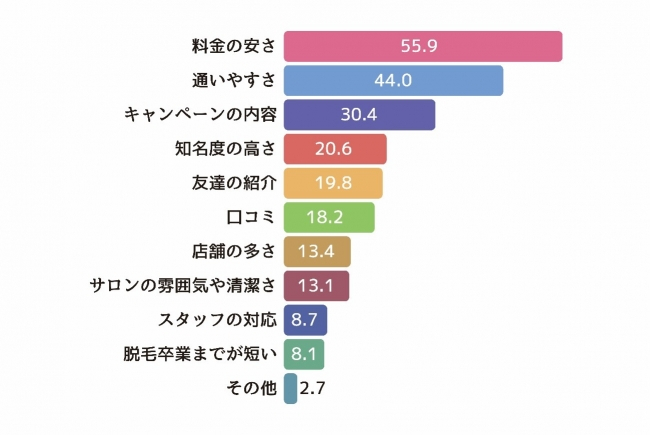 ◆脱毛サロンを選ぶ決め手は「低価格で通いやすい」