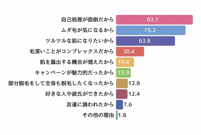◆2017年より変わらず全身脱毛を始めたきっかけの約8割が「自己処理が面倒だから」