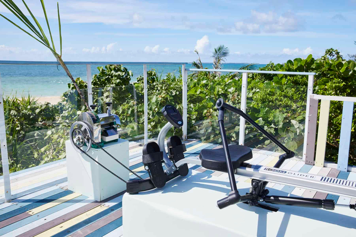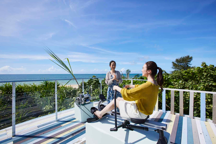 特徴1 白砂のビーチとコバルトブルーの海を眺めながらエクササイズ