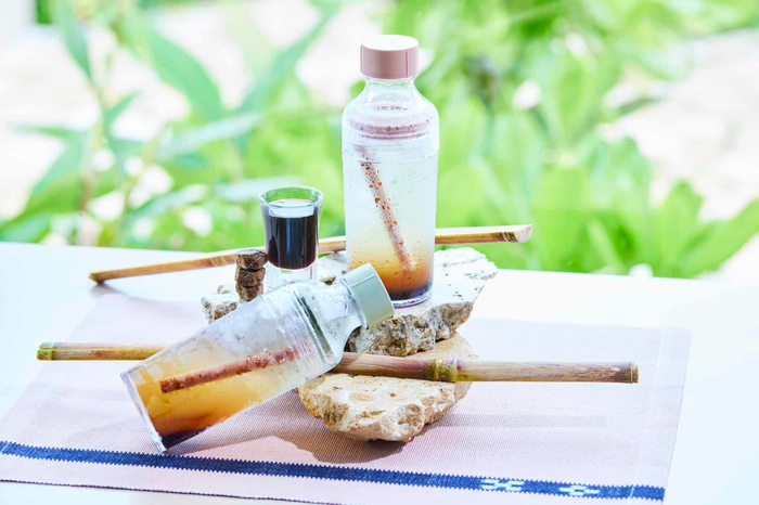 ビーチに隣接する「BOOKS&CAFÉ」で、自分で絞ったさとうきび汁を煮詰め、黒みつを作ります。できたての黒みつはトロミと豊かなコクを感じられる甘みがあります。黒みつを使用したスペシャルドリンクは糖分とミネラル補給でき、疲れた身体を癒すドリンクです。