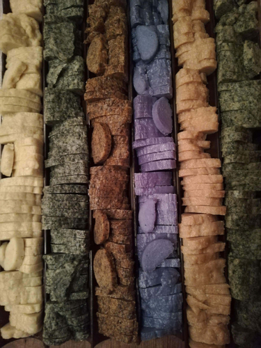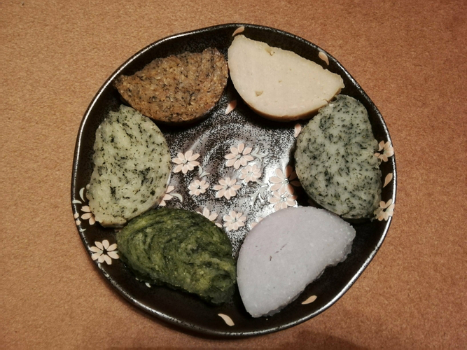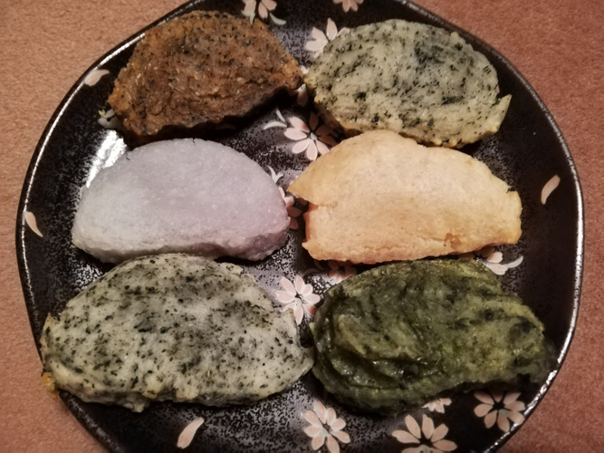 材料  :水稲もち米(国産)、緑茶、ほうじ茶、蝶豆茶、蘇芳茶