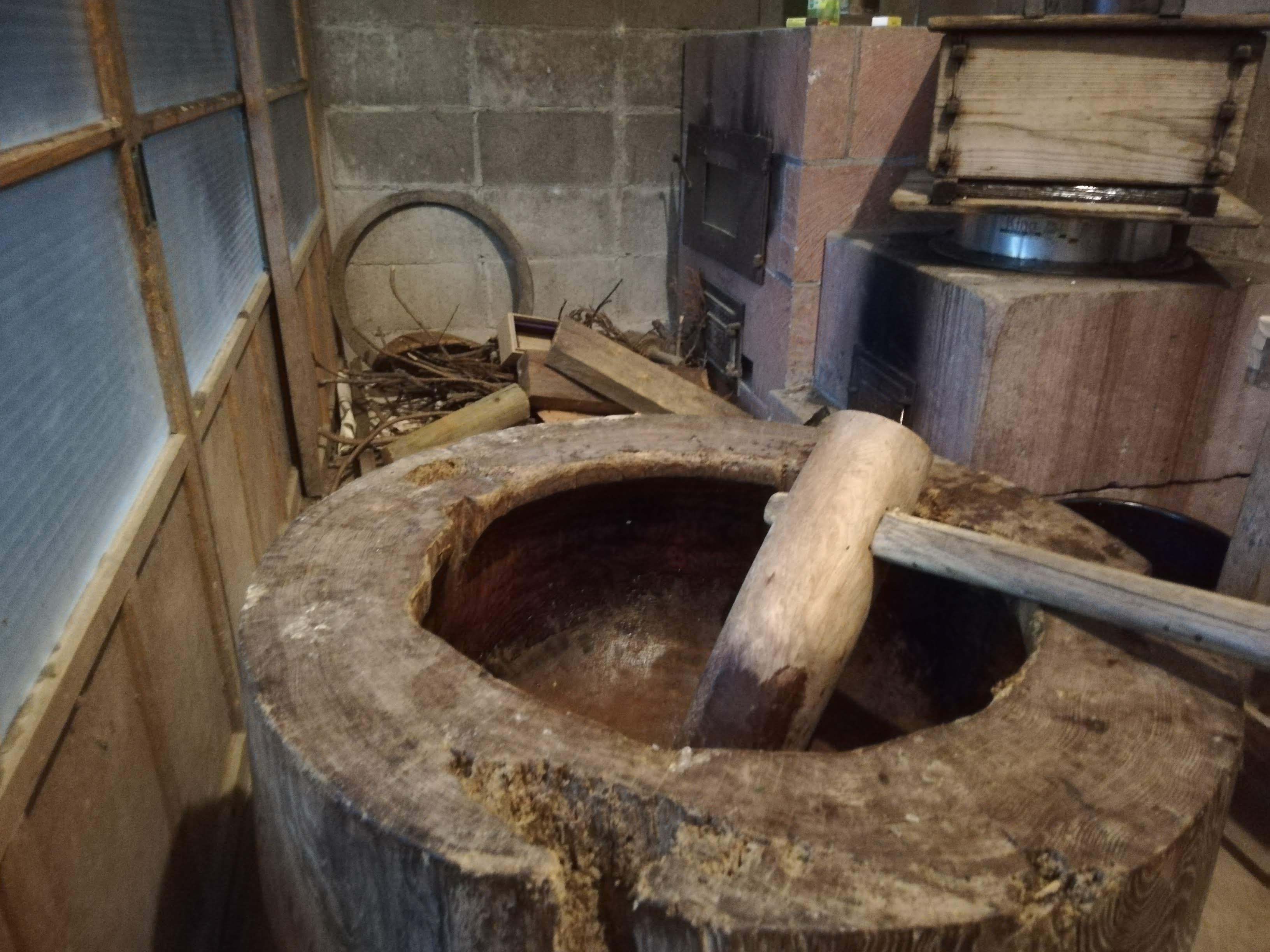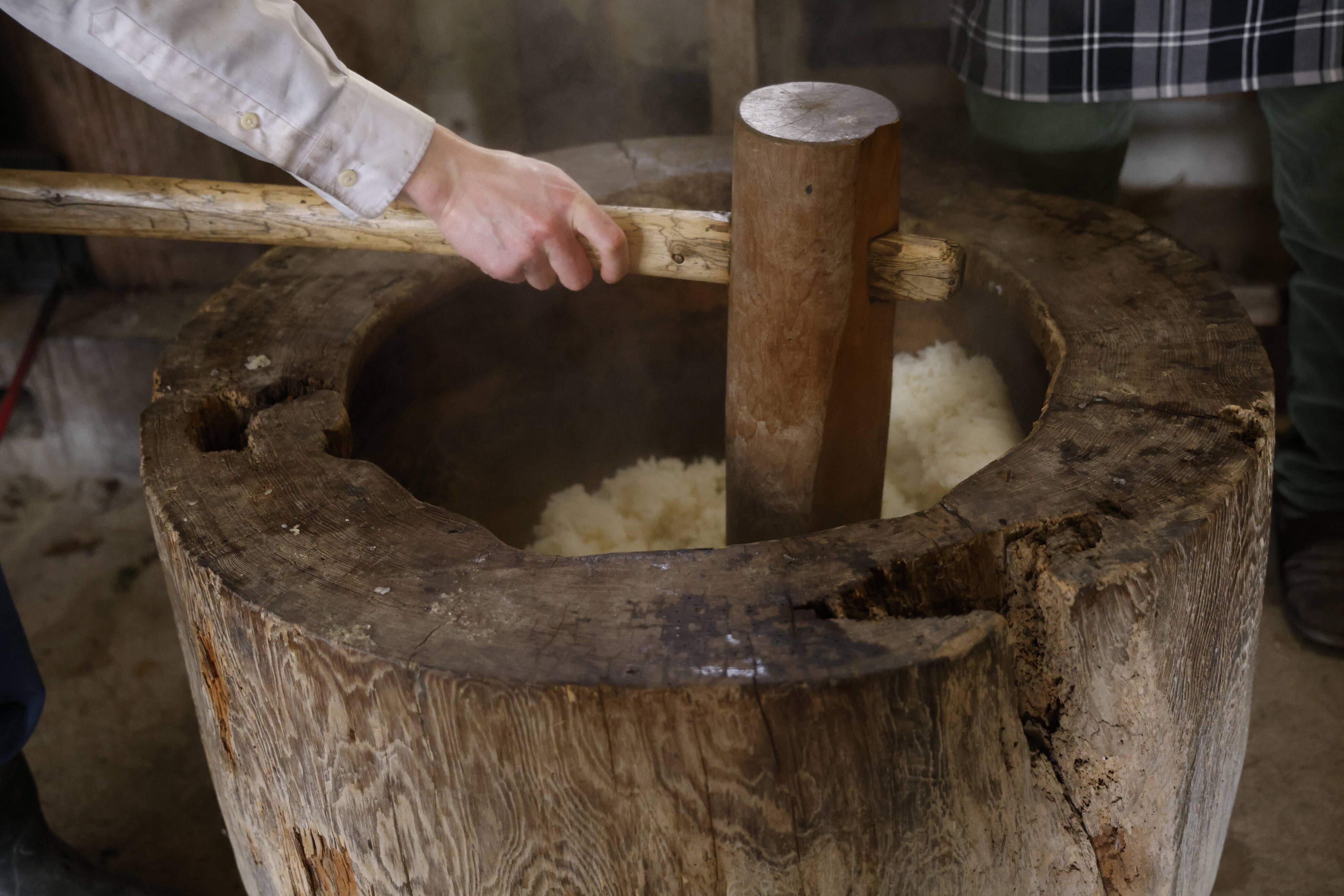 少し前まではどこの農家でも、かまど蒸かし手搗きで餅を作るのが当たり前でした。しかし現在ではほとんどの農家が電気餅つき機を使うようになったため、市場ではまず手に入らない製法となりました。