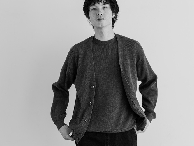 シップスが制作を依頼したのは防縮ウール糸と超長綿をブレンドした原料を使用した半袖クルーネックセーターとカーディガンの2種類。