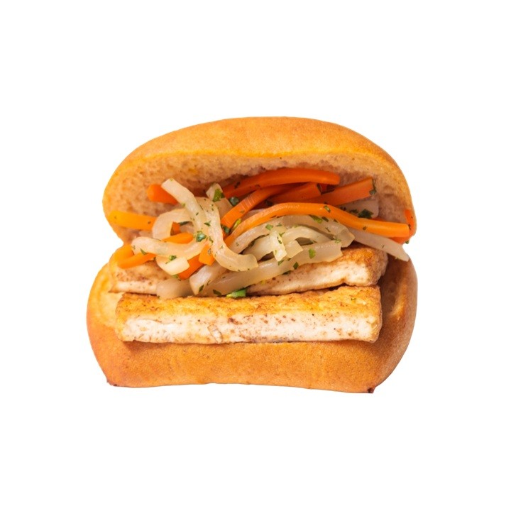 五香粉で香り付けし、こめ油でこんがり焼き上げた厚揚げをサンド。大根とにんじんの酢漬け、パクチーの爽やかさがアクセントになった一品です。