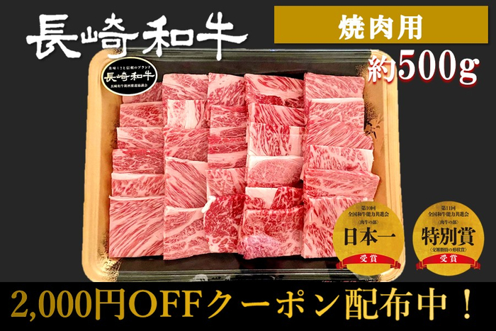 対象商品は、「長崎和牛ロースステーキ400g」「長崎和牛焼肉用500g」「長崎和牛スライス500g」の3商品で2,000円引きクーポンを使用すると¥5,980(税込)⇒¥3,980(税込)で購入できます。