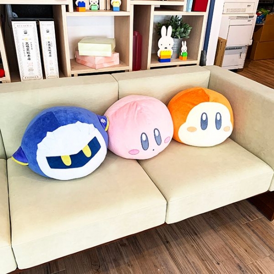 見ているだけで、楽しくなる3キャラクター♪クッションでくつろぎながら、カービィのゲームを楽しむのもいいですね。