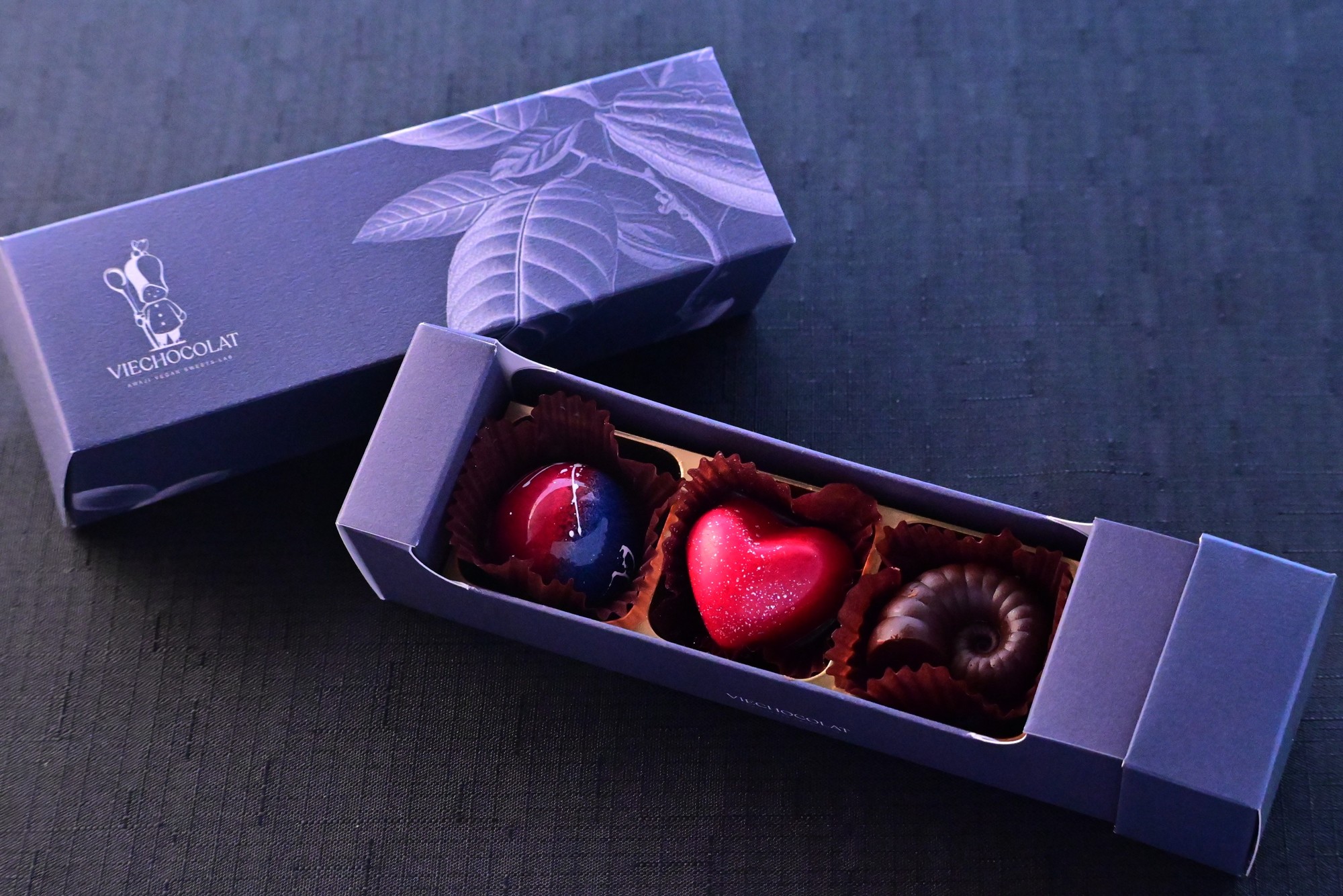 また、隣接する「VIE CHOCOLAT」では、会期中に一般販売はなく、パビリオン視察に訪れた各国の要人や政府関係者などのVIP向けに提供されていた、パビリオン「PASONA NATUREVERSE」の象徴であるアンモナイトをモチーフにした「NATUREVERSEチョコレート アンモナイト」と、赤と青のコントラストが印象的な「NATUREVERSEチョコレート DNA」を同日より販売。さらに、上記2種にハート型のヴィーガンチョコレートを加えた「NATUREVERSEチョコレートセット」も提供いたします。卵や乳製品、白砂糖などの動物性食品を一切使用せず、身体に優しいオリジナルのヴィーガンチョコレートです。