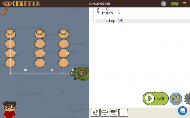 サルの動きをプログラミングしてバナナをとる、という単純明快な課題解決型教材。