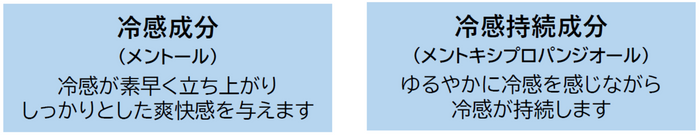 瞬時にひんやりとした冷感を感じ、爽快感が持続します。