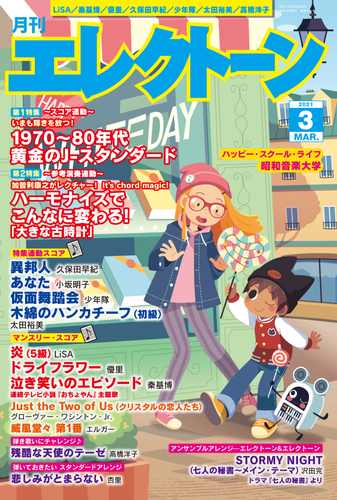 月刊エレクトーン2021年3月号は、【いまも輝きを放つ! 1970~80年代 黄金のJ-スタンダード】と【加曽利康之がレクチャー!It's chord magic! ハーモナイズでこんなに変わる!「大きな古時計」】の2大特集です。