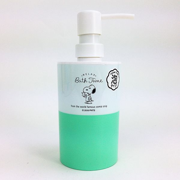 清潔感のあるホワイト×ミントグリーンで、バスタイムのスヌーピーがデザインされています。